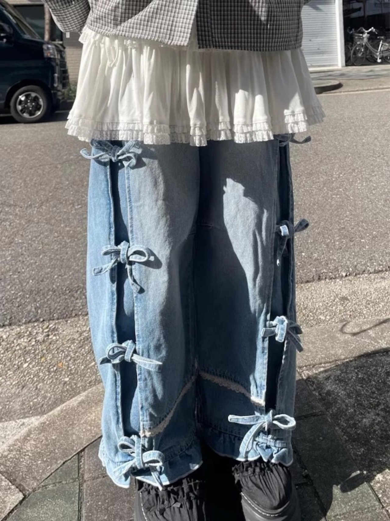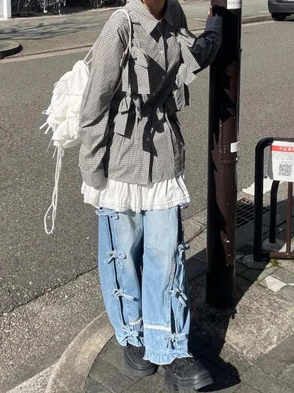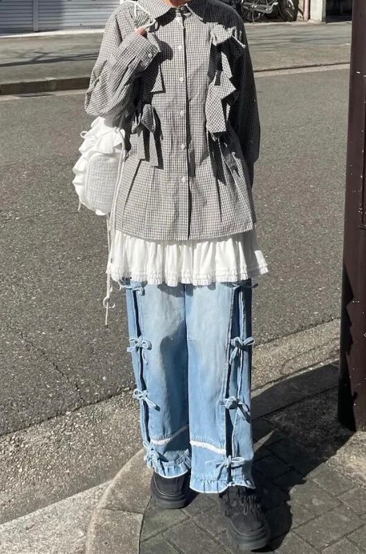 【受注】Center ribbon denim pants(センターリボンデニムパンツ)